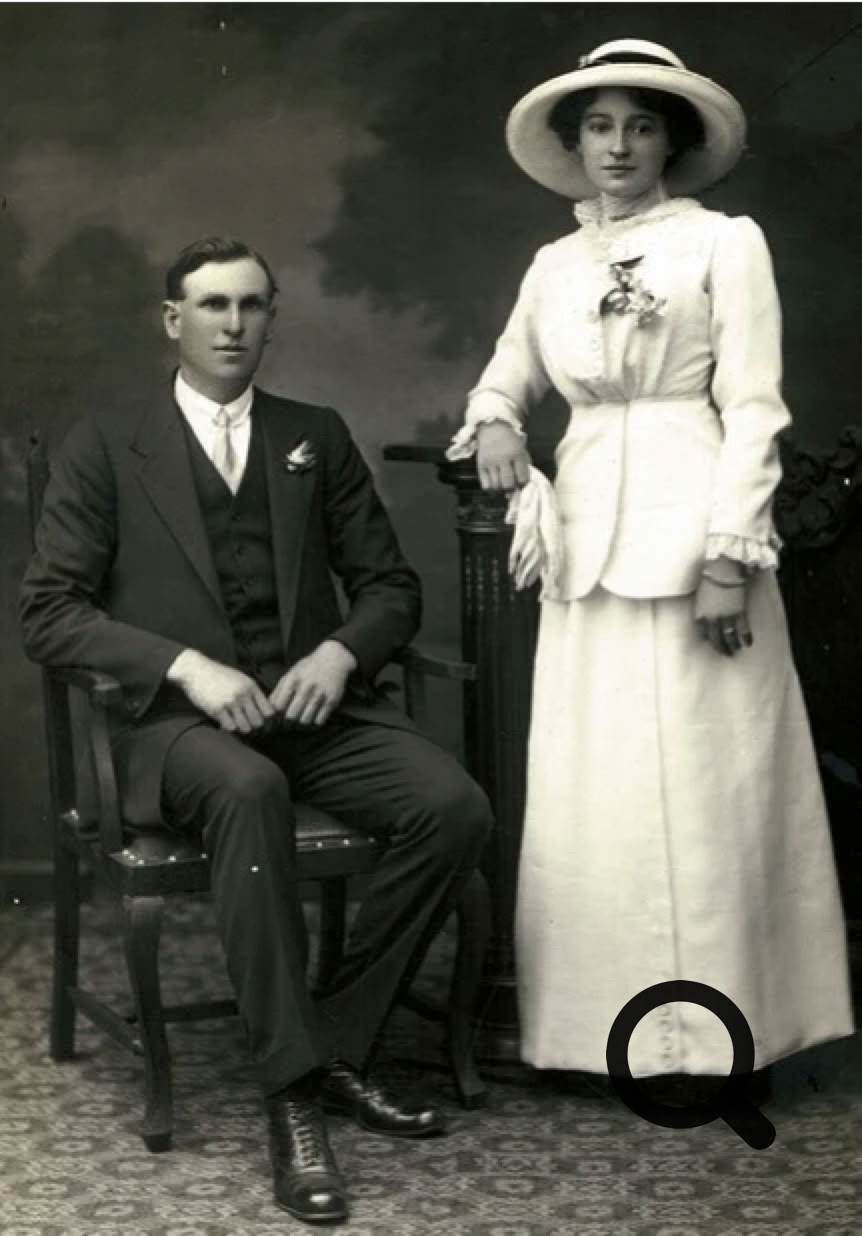 Jack (25) and Elsie (18) on their wedding day - 10th November 1913 at St Pauls Cathedral, Bendigo, Victoria, Australia.