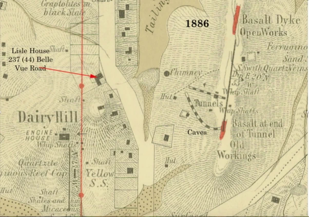 Next to the dam were the two 'caves'; 200 metre long tunnels bored in under the 'Blue Hill'. With our candles we spent many hours here. The right-hand tunnel had a bend half-way down and it was completely dark after this, also there was a small room cut into the rocks just around the bend. We often dragged 'Chinese Scrub' down the tunnels and lit it up; just to watch the smoke come billowing out of the entrance. Refer to the maps below and also the article on my Grand-parents (Lisle) House.