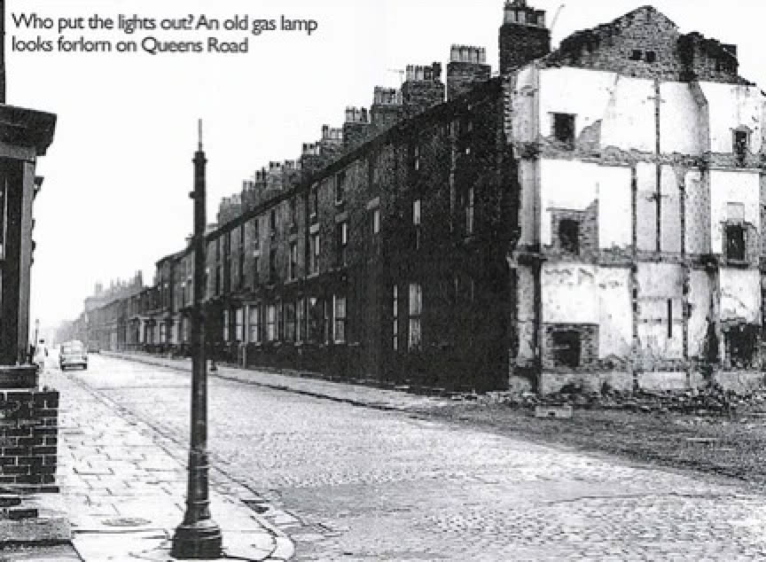 Many of the areas had been standing for over 100 years, and had been subject to heavy bombing during World War 2. I clearly remember seeing a gap in the houses along Queens Road in Everton, and seeing a bomb site. You could still see the bedroom wallpaper up on the two houses either side of this space.