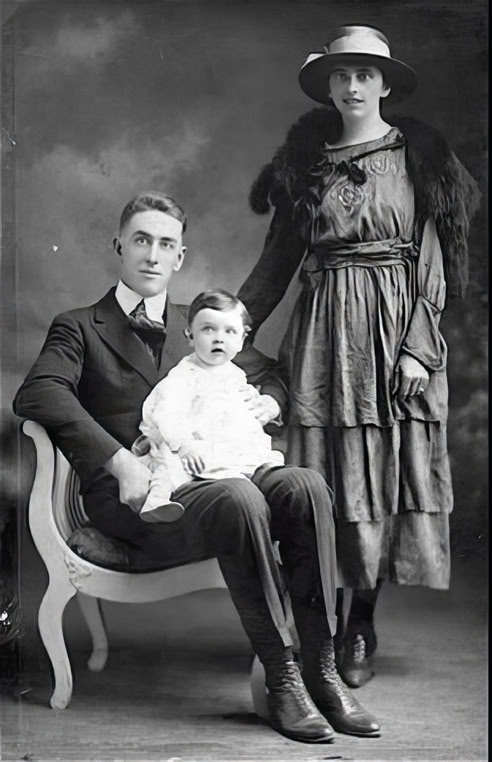 Left: Rhoda Eastham MacDougall, her husband John D.(Jack) MacDougall and their eldest son Lorne. Photo taken in Calgary, Alberta Canada about 1920.
