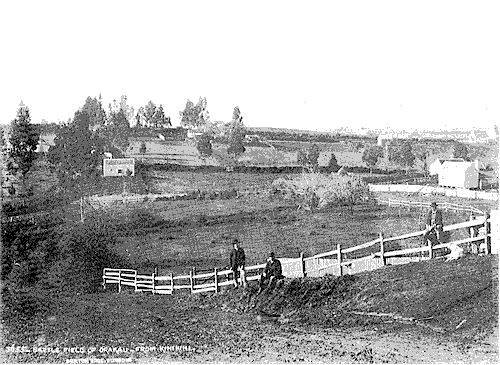 By 1885 the battle site at Orakau had been transformed into neat farmland bordered by English style posts and rail fences. All or part of the land in the picture was owned at this time by WILLIAM ANDREW COWAN and WILLIAM QUALTROUGH. The men in the picture are unidentified but one wonders if the afore-mentioned are included.