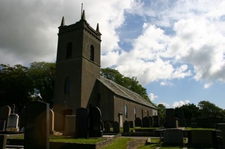 ARBORY PARISH CHURCH where James QUALTROUGH was baptised in the year 1808. The Churchyard has buried in it many Qualtroughs of past years and is located in the village of Ballabeg