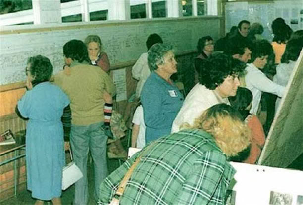 The display of old family photographs of people and places which had been loaned for the occasion and the immense Family Tree attracted tremendous attention. The Tree was spread across one wall of the room on a roll of wallpaper 11 metres long. It went back 300 hundred years and had 1100 names (including spouses) entered on it.